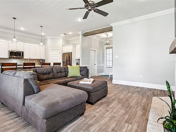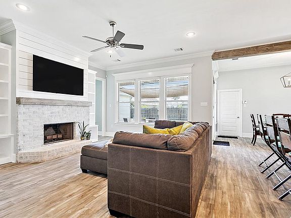 Situated on a spacious corner lot in the highly sought-after Guste Island community, this home is sure to impress. Step inside to discover a world of modern upgrades, including new appliances, a versatile flex/walk-through office space, a huge island, stunning granite counters, an inviting interior brick fireplace and charming wooden beams. Shiplap accents and custom cabinets add a touch of elegance to this already remarkable space. And the best part? No carpet! Outside, you'll find even more to love with installed gutters, french drains, a fenced rear yard for privacy, and a fabulous rear porch that's ideal for entertaining.