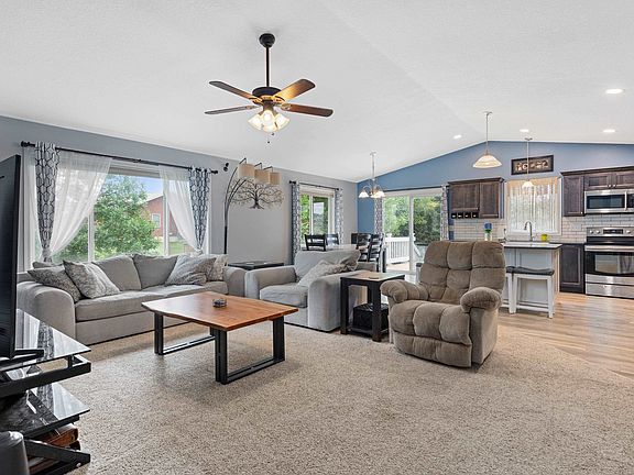 Check out this wonderful 2,434 sq. ft., 4 bed, 3 bath, 2 car oversized garage home nestled in the quiet Summerset subdivision. The main level has an open floor plan with a spacious living room, a combination kitchen/dining area that boast a large eat-in island, subway tiled backsplash, Mocha colored cabinetry with soft closure, stainless steel appliances included, and a patio door walkout to the 12x12 deck, a laundry area with sink off the kitchen, master bedroom with master bathroom, an additional bedroom and, a shared bathroom. The basement has a nice size family room with gas fireplace, 2 additional bedrooms, a shared bathroom, a storage room, and the ceiling is “true height” with ductwork going through the trusses. There is an awesome 28x14 patio area surrounded by mature trees which makes this perfect for entertaining or family time. Owners loved the neighbors and the out of town feel of the area, and they know you will too.