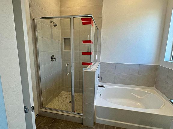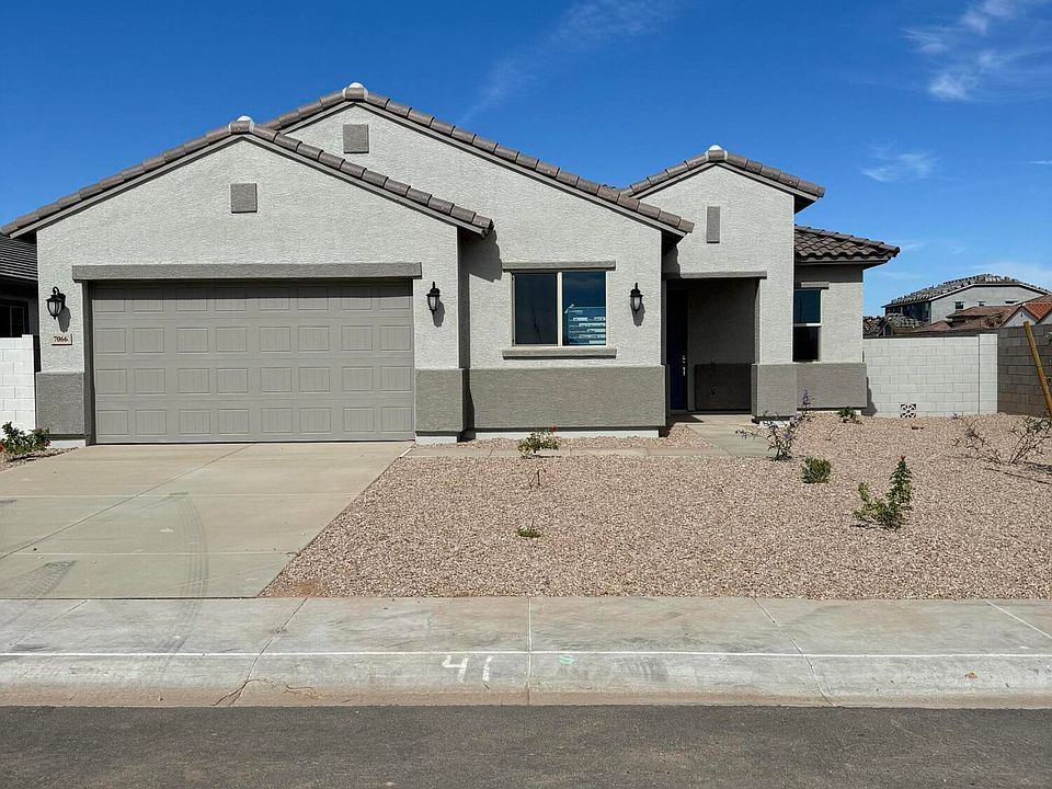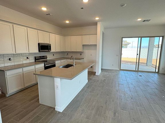 *NEW CONSTRUCTION* The Madera 5G offers an inviting open-concept design with 10-foot ceilings and four spacious bedrooms. The kitchen, featuring a large island, seamlessly flows into the great room, dining area, and extends to the covered patio—perfect for all your entertaining needs. The primary bath boasts a separate tub and shower.. Designer touches include 42'' white upper kitchen cabinets, sleek grey quartz countertops in both the kitchen and bathrooms, and 8x36 wood-look tile flooring throughout. This home is move-in ready!