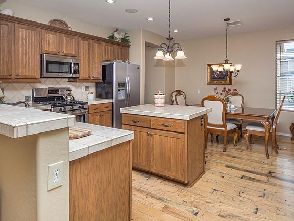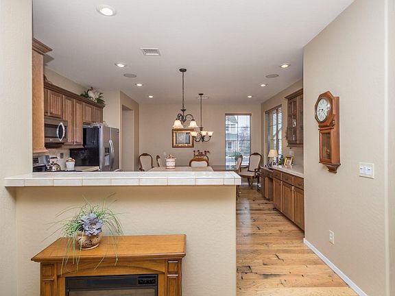 StoneRidge Former Juniper Model Home & It Looks Brand New! 3BD/2BA/2GAR, 1823 SqFt, Upgrades Throughout! From the moment you enter the Foyer you will love the Beautiful Australian Cedar Wood Flooring that Leads to the Open GreatRoom w/Kiva Shaped Tile Fireplace with Hearth, Quality Custom Built-In Entertainment Unit with $5000. Stereo Equipment Included, Newer Vertical Blinds, Designer Lighted Ceiling Fan & Newer 2 Tone Paint. Open Kitchen w/Glossed Tile Counters, Island & Dining Bar, Pullout Cabinets, Dark Oak Cabinetry w/Crown Molding + 42'' Uppers, Cooks Desk + Glass Front Cabinetry, New Stainless Appliances + Refrig, Walk-In Pantry & Dining Area. Master BD w/New Carpet, Exec Height Counter w/Raised Kohler Sinks, So Many Upgrades PLEASE Print out List and Share with Buyer