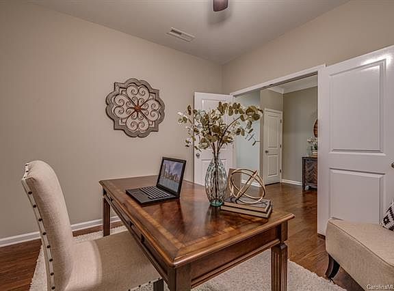 Home for the holidays. Beautiful home with rocking chair front porch in Fort Mill SC. Open floor plan with 2-story great room brings in tons of natural light. Home office, formal dining room, SS appliances, granite counters, kitchen island, walk-in pantry, and butler's pantry. Fresh interior paint, hardwood floors throughout main level and common areas upstairs. Spacious laundry room upstairs. Full-bath on main level. Fenced yard with large patio area - perfect of entertaining or playing. Convenient access to shopping and dining at Pineville, Ballantyne, light rail, and I-77 and I-485