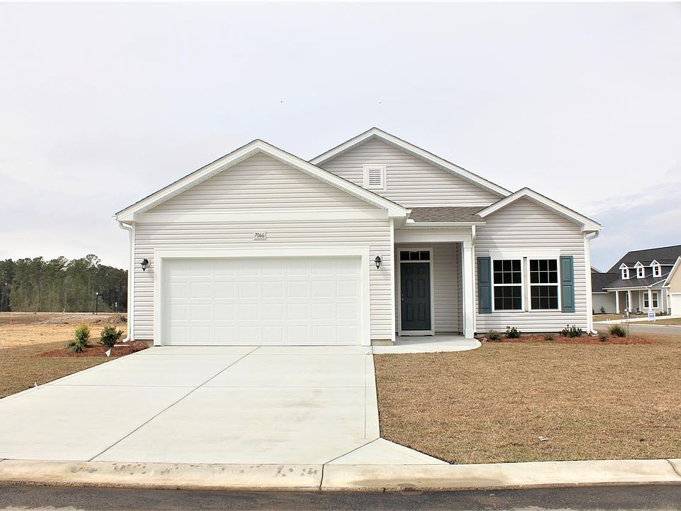 The Aurora Plan. Now available at Clear Pond at Myrtle Beach National. This natural gas neighborhood will feature our most popular home plans and all home sites backing to the privacy and serenity of woods, wetlands and ponds. The Aurora is a 2 bedroom 2 bath home with open living space, large kitchen island over looking your great room. great room, kitchen, and dining room. This home is located on a corner home-site. 5" laminate flooring in the foyer, great room, kitchen and dining area. Tile in all wet areas. The master has a 5' walk in shower. A utility sink has been added to the garage. There are plenty of standard options that your H&H home will feature. Some of these are a front porch, 12" ceramic tile floors in the wet areas of the home. 5" Bourbon Mill laminate in the foyer kitchen/nook and dining(per plan) Carpet in all bedrooms. Cabinets are 36"/42" staggered with crown molding. Granite in the kitchen along with Stainless steel appliances. Your master bath will come with double sinks, garden tub and walk in shower. This home comes with full landscaping, irrigation. and gutters on the entire home. So many features to list. Contact the listing agent for all the details. We also have a full state of the art design center to choose many luxury options and customize your new home. Call your sales representative for more information on this program. Pictures shown are for representation purposes only.