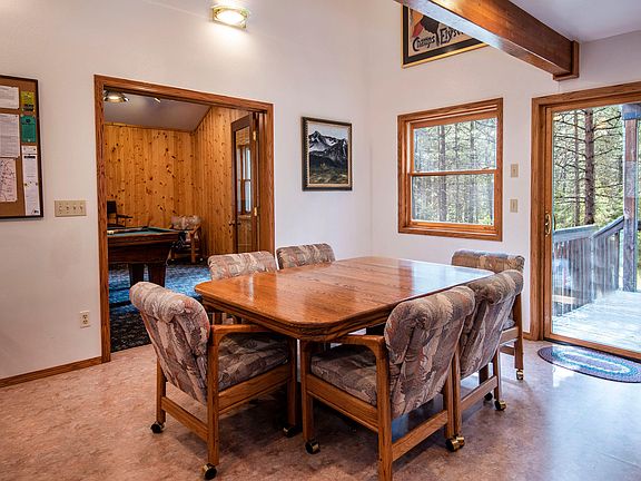 Rich and warm interior complemented by high end woods including California Redwood, Hemlock, Western Red Cedar, Knotty Pine and clear vertical grain fur. Custom crafted windows by Weather Shield in Wisconsin. Three complete baths, reverse living concept with bedrooms on the lower level and living space including kitchen, large dining area and living room. Large game room with pool table. Two hot water heaters and dryers. Home is well maintained.