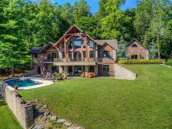 Discover a slice of heaven on Earth in this custom built wilderness retreat. The home features dramatic great room with Amish-built beams on the vaulted ceiling and stone woodburning fireplace. The kitchen offers master chef capabilities with heated tile flooring, two dishwashers, five burner gas cooktop, double ovens and 8x8 walk-in pantry as well as a center island and a separate eating island, to enjoy the fruits of your labor. The master suite has his and her walk-in closets, heated floors and private access to a hot tub. An extensive use of glass brings in natural light and allows for dazzling views of the spring-fed lake and wooded acreage. Also included is saltwater pool, whole house generator and detached shop. Come home to the Great Outdoors! Call for a complete list of amenities.