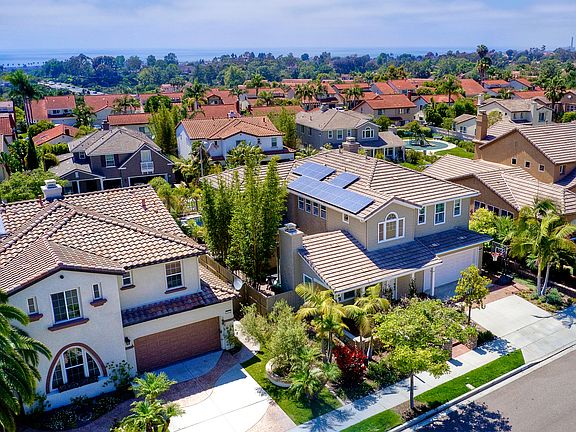 NEWLY REMODELED KITCHEN offers quartz counters with an impressive herringbone backsplash. Kitchen & breakfast area open up to the family room for an open concept experience. The 5th bedroom is located on the first floor next to an office or optional 6th bedroom. This home sits on a premier lot with an entertainers dream backyard, built-in BBQ, fire-pit, custom spool, and complete with OCEAN VIEWS. The side courtyard is perfect for outdoor dining and allows for ambient light inside. Owned SOLAR system. The luxurious master suite includes a balcony with a spectacular ocean view, large walk-in closets and spa-like bath, soaking tub and large walk-in shower. Each bedroom closets throughout the home have been upgraded with built-in organizing systems. TOP RATED SCHOOL DISTRICTS...Pacific Rim Elementary