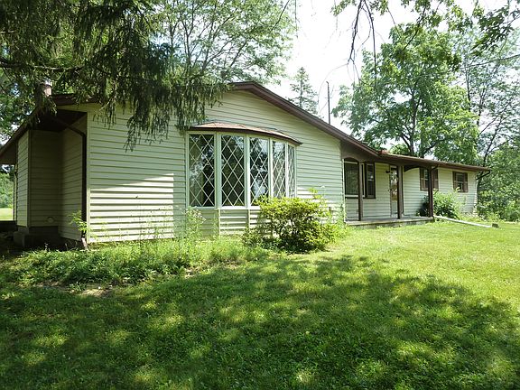 Spacious 3BD, 2BA Ranch nestled on over 5 scenic acres, with a serene 1.5 acre stocked pond. In addition home includes a 1744 s.f. detached 4 bay/workshop garage with heat. Great room includes a beautiful bay window and a large stone fireplace with woodburning stove. Updates include water-proofed basement, new septic system and hot water tank in 2017 as well as the addition of city water in October 2017.