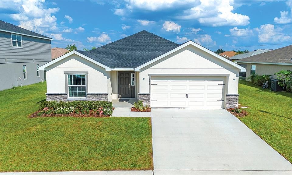 High and dry and able to close FAST. Sellers relocated due to work reasons, so you can close FAST on this 2023-built MOVE IN READY gem of a home in USDA loan eligible area!! A spacious popular model, located in the lovely gated community of Hunters Crossing, this 4-BEDROOM features an open plan - with an over-sized kitchen, informal dining area and Great Room with volume ceilings and an extensive wall of built in shelves and electric fireplace! The Great Room opens to a large screened in lanai which looks out to the backyard. The beautiful open kitchen features shaker-style cabinetry, granite counters, stainless steel appliances, a HUGE walk in pantry closet and TONS of counter space and a breakfast bar - perfect for casual dining and entertaining! There is an entirely extra space in the kitchen near the sliders that is great for a dining set as well! Master bedroom features two closets and an attached private bathroom with separate shower stall. The home is equipped with luxury vinyl plank flooring through most of the home, with 3 of the 4 bedrooms equipped with stain resistant carpet. Neutral paint throughout. An inside laundry room and an attached 2-car garage compete the layout. Professionally cleaned and able to close quickly so make your showing appointment soon and move in ahead of the holiday rush!
