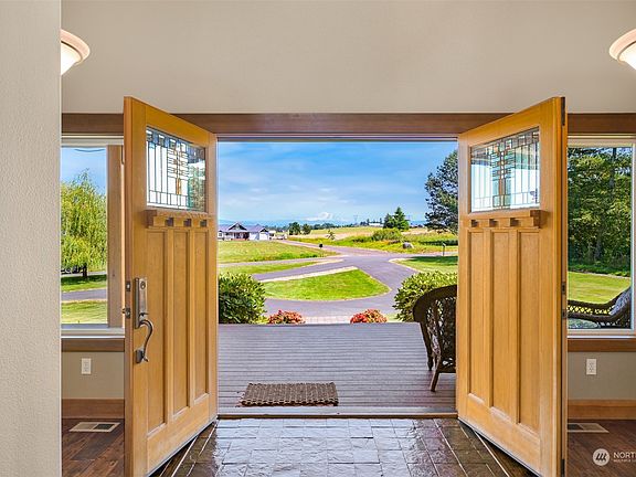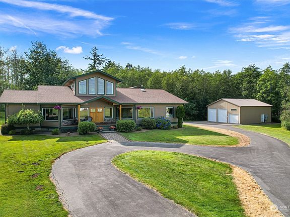Custom one-level living home with stunning views of Mt. Baker, situated on a park-like 5-acre lot with your very own private wooded trail. Inside, you'll find an open concept layout with 24 ft cathedral ceilings, engineered hardwood floors, primary suite with a spa-like ensuite bath & custom walk-in closet + multiple office spaces, wet bar & large upstairs bonus room. The kitchen is a chef's delight, with custom alder cabinets, walk-in pantry & a large center island. Outdoors, enjoy the incredible 3-bay heated & insulated pole barn with car lift + newer Trex deck, the perfect place to BBQ & entertain. Stay comfortable year-round with geothermal heat & A/C. This home truly has it all – don't miss your chance to own this exceptional property!