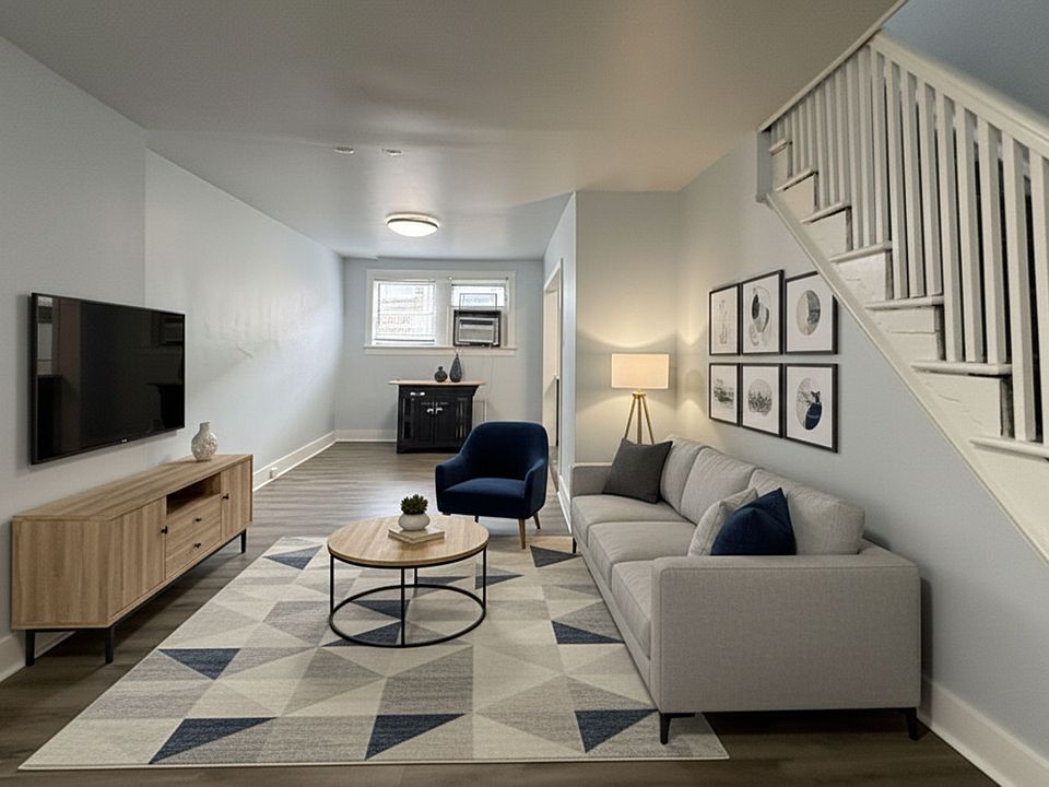 This 730 sq. ft., two-story residence in Upper Darby, PA offers a practical living space with three bedrooms and one bathroom. The home is efficiently designed, with 340 sq. ft. on the ground floor and 400 sq. ft. on the upper level. The primary bedroom, measuring 140 sq. ft., provides a comfortable retreat. The interior showcases a blend of modern updates and classic elements. The bathroom has been renovated with marble-look tiles, a white vanity, and a bathtub-shower combination. Throughout the home, a mix of carpeted and vinyl flooring adds character to different rooms. Large windows in the bedrooms and living areas allow for ample natural light, while window air conditioning units provide climate control. The property features built-in storage solutions, including closets with upper shelving. A staircase connects the two floors, and the layout includes a hallway for easy navigation between rooms. The neutral color palette, predominantly in shades of white and light gray, creates a bright and open atmosphere throughout the space. While compact, this home offers functional living areas suitable for small families or first-time homeowners. Its location at 7068 Clover Lane puts residents in the heart of Upper Darby, providing easy access to local amenities and urban conveniences. Qualifications / General Screening Criteria: Rental applications must be complete, correct and verified. Gross monthly income must provable and be at least 3 times rent or tenant must have a housing choice voucher. Applicants must have a proven history of on-time rental payments not including the COVID-19 emergency period. Applicants must have a good relevant credit history or tenant must have a housing choice voucher. Applicants must have no evictions in the last 4 years except during the COVID-19 emergency period.