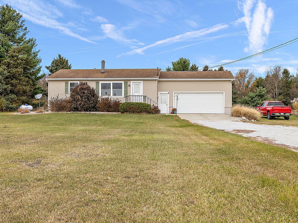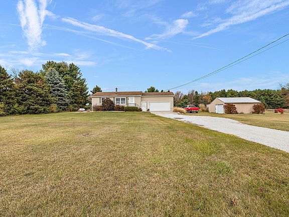 Come see this 2 bedroom with a possible 3rd in the basement. 2 stall attached garage with a 34 x 24 pole barn on 5.7 acres. New furnace in 2025. The manufactured wood flooring through out the house is beautiful. Don't miss this opportunity. Tree stand on property is not staying.