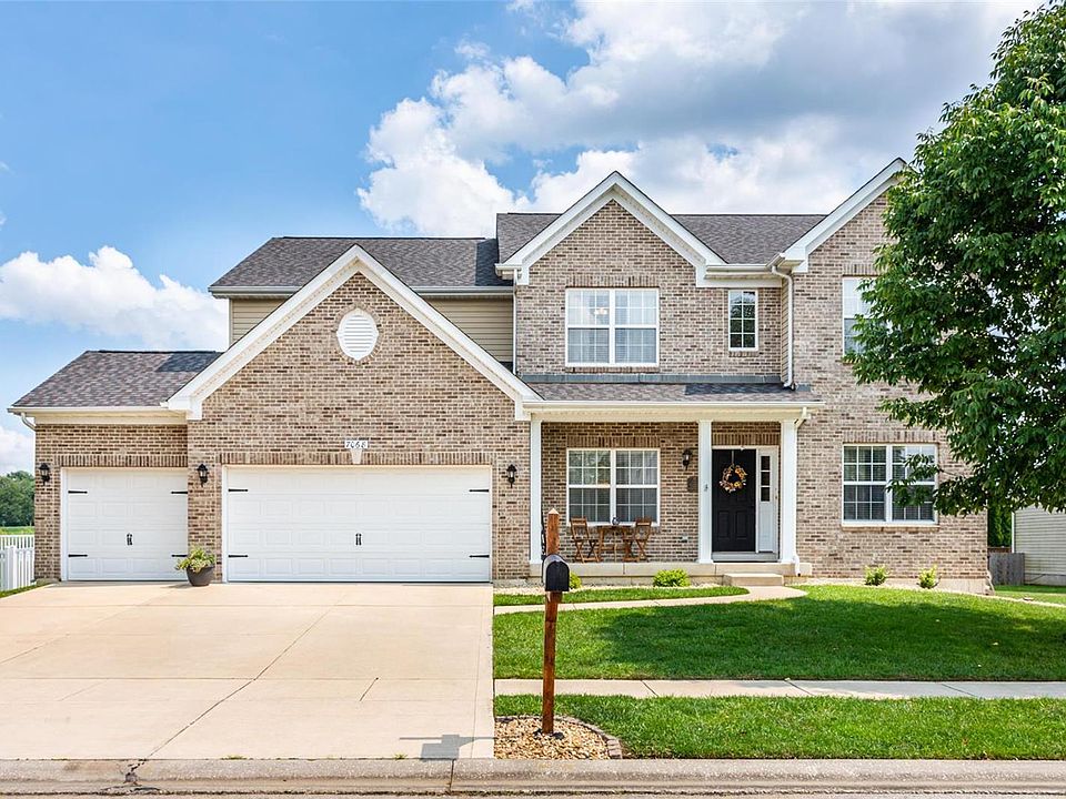 Step inside and fall in love with over 3,200 sqft of updated living space. This immaculate 4 bedroom home features an exquisite two-story foyer entrance with new entry lighting, new laminate flooring and new carpet throughout. Additional main floor features include separate dining, formal living, huge great room with picture windows, open floor plan, eat in kitchen with pantry, laundry, and a huge office/play/bonus room. Great layout for entertaining and working from home. Desirable dual staircase leads up to huge master en suite with dual walk in closets, and 3 additional beds and another full bath. Ample storage and daylight throughout, vinyl fenced yard (2015), and east facing rear patio perfect for evening outdoor gatherings. Egress in unfinished basement for possible 5th bedroom, rough plumbed for 4th bathroom. 75 gal water heater, new architectural roof 2019. O'Fallon Schools, convenient access to shopping, dining, interstate, SAFB & more! This incredible home is ready for you.
