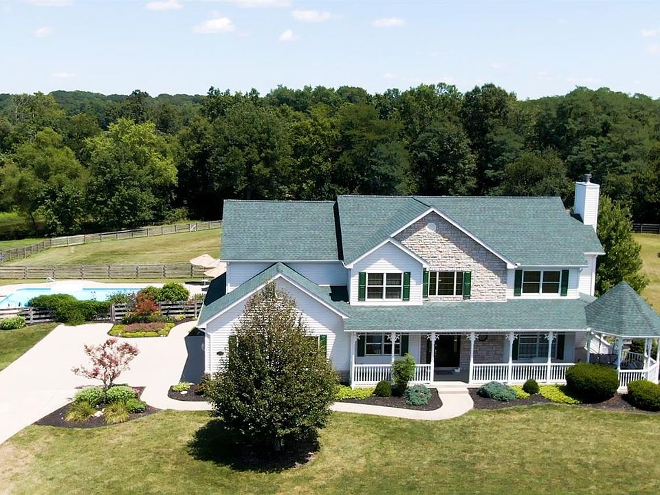 Dream home in the country with all the privacy you ever wanted! 3.74 acres fenced. 50 ft wrap around porch with swing. 4 BR-4 Full Bath 3 car garage, Hardwood flrs throughout, 2nd Flr laundry, Spacious kitchen / 9 ft granite Island. Pella Windows & 6 panel doors New roof 2020. 40x20 pool,Low lev office/ 21x15 Exercise rm/walkout, Lake access