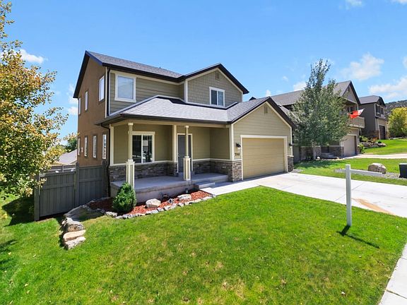This stunning home features an open floor plan and is conveniently located minutes from Pony Express Parkway. One of a few custom homes in the neighborhood built by a luxury Park City builder. The unique entryway arch, oak hardwood flooring throughout, and custom wide stairs will immediately make you feel at home. It has been meticulously taken care of with a sturdy wooden fence, newly stained deck featuring gorgeous views of the valley and stainless steel appliances.