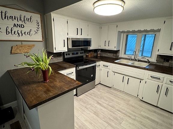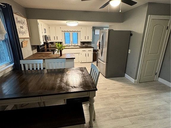 Come check out this cozy and well-maintained 2-bedroom, 1-bath ranch offering 858 sq ft of updated living space on a generous lot. Renovated front room with new light fixtures throughout. Kitchen features new butcher block countertops, cast iron sink, and modern fixtures. Updated bathroom and new interior d for activities that also includes multiple outbuildings for ample storage. Garage includes RV/camper hookup. Recent mechanical updates include new well pump and water softener. Move-in ready with numerous upgrades! Extra side lot also available for purchase. Floors throughout. Laundry hookups available on both the main floor and basement. Large yard with plenty of room