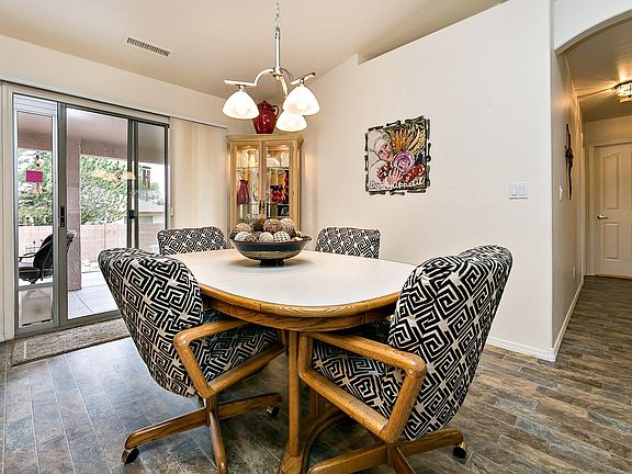 Well-maintained home, lightly lived in as summer home. Open Great Room plan with wide bay of windows in front, gas log fireplace w/ hearth, vaulted ceiling, pot shelves, arches. Granite counters in kitchen, new sink, new stainless appliances, pantry, ''Whisper'' garbage disposal, & quiet dishwaher. Pleated shade side-pull cover for Arcadia door. Split floor plan, spacious Master Suite w/easy step-in tiled shower w/ bench. Raised toilets. Sun screens on west side, tiled extended patio & front entryway. Beautiful rose bushes front & back. Easy care landscaping, fruit trees, storage shed, French drains. Some views of Mingus Mt from front. New carpet & wood-look vinyl flooring. Exterior painted 2 yrs ago. New garage door. Low HOA fees, NO CFD. Move-in ready, a great value! Furniture FOR SALE