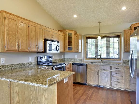 This beautiful home has beentransformed with new granite counter tops and Hickory Hardwood floors! It is a greatdesign that features a hugekitchen and a walkout 3rd level. A triple window is above the sink and lends a view to the front yard. The custom skyline cabinets feature a triple wide pantry and glass corner door. There are 3 walls of cabinets and a peninsula. Of course the appliances are stainless! The dining area is off the kitchen and opens to the large deck in the back yard. Be sure to notice the vaulted ceiling in the kitchen and dining. The knock down ceiling looks really awesome with a custom paint job under the knock down. Relax and stay warm by the gas fireplace in the living room. The family room on the 3rd level is huge! Walkout to the fenced backyard. You will love the laundry room on the 3rd level as well. Notice the ceramic floor and built ins. The area is great with easy access to 94 and just minutes away from the Albertville Mall. Parks and schools are nearby too. Riverwood National Golf Course is located in Otsego. Riverwood clubhouses restaurant has a patio overlooking the 18th green, casual dining and a full bar. The Vintage Golf Course is an 18-hole executive course across from Riverwood National. The Rockwoods Grill & Bar Banquet Center is also located in Otsego. Rockwoods offers daily specials as well as Sunday Brunch from 10am 2pm.Directions 70th East of Labeaux to Lambert