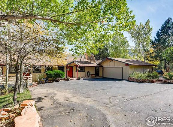 Private & nicely updated foothills spread just 5 minutes from Boulder.Nestled on over 5 acres,this lovely property has 2 mstr suites(one upstairs & one in walkout bsmt w/5 piece bath)multiple skylights/solar tubes for lots of natural light,solar hot water,a beautiful garden area,13 X 7 greenhouse,oversized,finished 2 car garage AND 2 detached carports for 3 additional covered parking spaces w/ storage,fenced dog yard,flat yard for entertaining & is tucked away from Olde Stage Road. A true gem.