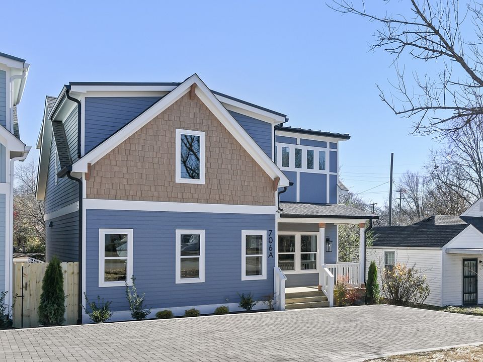 Charming new construction home in the heart of East Nashville by Lockeland Springs, steps from Shelby Park & walkable to Porter Rd hot spots! Built by Best of Nashville award-winning Jackson Builders, this home is full of colorful vibes & boasts a perfect blend of contemporary design and traditional charm, blending beautifully into this highly sought after burrow of East Nashville. Custom blue kitchen with built-in pantry and generous island is open concept to the dining room with matching sideboard and a spacious living room with gas fireplace. The light-filled & open LL has two covered porches -- front and back -- each designed to have privacy from the neighboring homes. 3 bedrooms upstairs, including the primary, each have their own private bath, providing great flexibility for buyers. Fully fenced back yard for privacy. Complete & move-in ready!
