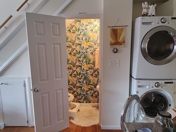 Private backyardIn unit laundryLots of closetsGreat natural lightHardwood floors