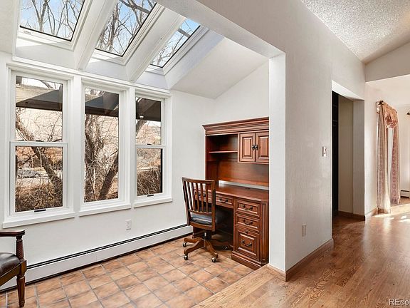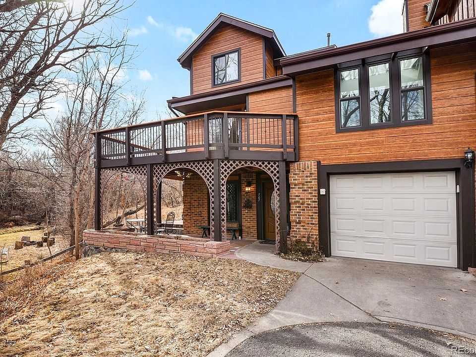 End-unit, large, bright and open townhome (overlooking greenspace/creek), one car garage, -No HOA- and in the heart of Golden! Even more dazzling in person than photos! $300,000 in updates and improvements. Easy walk to restaurants, bars, Clear Creek trail, hiking and Natural Grocers. MAIN FLOOR- Kitchen- Custom, high end granite countertops, warm your toes with radiant floor heat, newer stainless appliances and open to dining and family rooms. Large living room- new hardwood floors, 1/2 high-end remodeled bathroom, gas fireplace. SECOND FLOOR- Master Suite- Custom, remodeled bathroom, secluded balcony overlooking greenspace/creek, and custom walk-in closet. New closet design by -California Closets- in all three bedrooms. Guest Suite- Custom, remodeled bathroom, cabinets and new carpet. BASEMENT- Guest Suite- custom, remodeled bathroom and radiant floor heat. Extra storage cabinets built into adjoining garage. EXTERIOR- Newer windows, roof and siding (with lifetime warranty). Large and newer redwood deck overlooks greenspace and creek (opens to dining room). Covered flagstone patio, planters and barrier wall. Property includes ownership of a section of greenspace and creek area. Separate zoned heating on each level of the home. Custom railing on staircase to second floor. Seller is open to leaving all of the furniture in the home to buyer. Vacant, go and show.