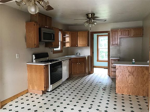 Restore this old beauty back to its original glory! It's not too late to enjoy the summer evenings on the large porch, or the fire pit when it turns a little cooler. The main level features a nice sized living room, eat-in kitchen, and a full bathroom. The second level features three bedrooms. The laundry is located in the basement, as well as additional storage space. There is also a two-car garage and long driveway for plenty of additional off street parking. Newer features include roof, siding, and windows. Property is an estate being sold "as is" with no repairs to be made by the seller. Offers will be accepted until August 2nd at noon, at which time, all offers will be presented to the seller and a decision to be made on that day by 5pm.