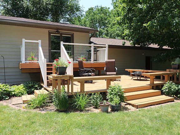 YOUR SEARCH IS OVER! You'll love the natural light that spills in from the all windows. You can just hear the laughter as you converse with family and friends while cooking in your dream kitchen. This 5 Bed, 3 Bath home is nestled on 2 lots and features an open floor plan, 2 gas fireplaces, 3 car insulated garage with hot/cold water and wired for 220v, spectacular yard with established apple, plum and pear trees as well as a 2 tiered deck . Close to school or shopping. All this on a quiet tree lined street.