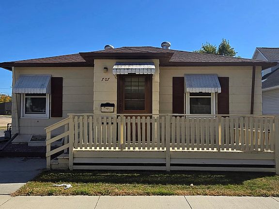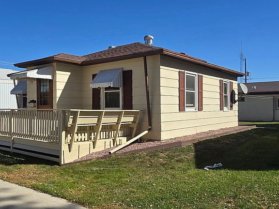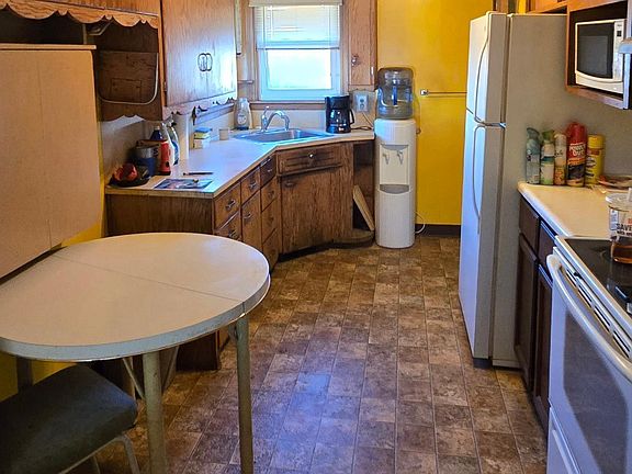 Newly listed! This cozy single story home has an eat in kitchen, living room, 2 bedrooms with closets, and updated 3/4 bath with walk in shower. Basement has family/rec room with recessed lighting, laundry room with 1/2 bath & utility room. Shingles are 2-3 yrs old, vinyl windows (2009), updated shower(2023), & gas water heater (2024). You will appreciate the arched doorways & there is hardwood under the carpeting. Asphalt driveway with double detached garage (22x20) & single detached garage/shop (12 x 22). Property is being SOLD AS IS. Great location close to grocery store!