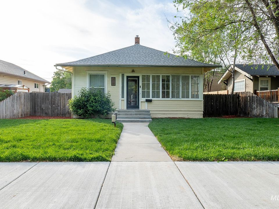 Charming and updated, this 2-bed, 1-bath home in Nampa’s historic district blends vintage character with thoughtful modern upgrades. A cozy sunroom welcomes you in and the large living room is perfect for entertaining. Recent additions include all new sod in the front and backyard, a full sprinkler system, cedar fencing for ample privacy and the main bathroom features a newly tiled shower. All major plumbing replaced in 2024. Detached 2-car garage has been converted into a fully insulated, heated and cooled shop or studio—ideal for a home office, creative space, or man cave. Ample off-street parking, including space for an RV or trailer, is available off the alley. The unfinished basement offers exciting potential to expand, making this an excellent starter home or investment property, just minutes from downtown Nampa.