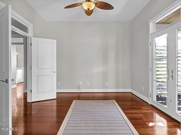 This beautiful home is located in the small neighborhood of Bradley Place off Airlie Road near Wrightsville Beach. This home has high ceilings, Brazilian cherry floors, a large covered porch in front and a screened porch in the back. The primary bedroom is on the first floor with two walk-in closets; the primary bath features 2 separate vanities, a soaking tub and a walk-in shower. The primary bedroom has double doors opening into an office/study on the front of the house. There is a second bedroom on the first floor and a guest suite upstairs with a loft area, a bedroom, and a full bath.