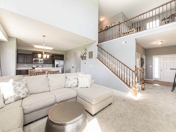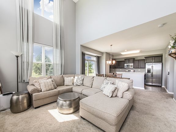Gorgeous end unit located on a premium lot w/pond and prairie views! Open concept floor plan ! Light, bright ,and painted in neutral grey tones. Large two-story sun filled living room w/BRAND NEW carpet! Kitchen features 42' inch cabinets, pantry closet, new flooring, and all stainless steel appliances. Updated powder room. 2nd Floor boats two bedrooms + Loft. Primary bedroom features private bath, and large walk in closet. 2nd bedroom has shiplap wall decor and nice size walk in closet. 2nd Floor laundry. Newer townhome built in 2017. Cul-de-sac location. Community features: outdoor pool, club house, Basketball Court , Splash pad , bike trails, Baseball Fields and much more. This meticulously maintained home, all new flooring on the first floor, don't miss out!
