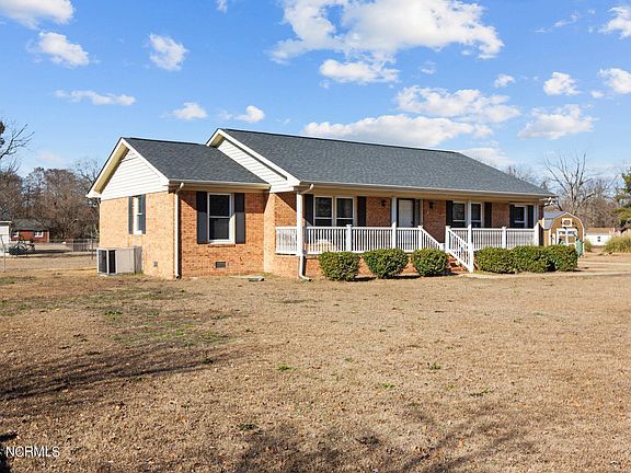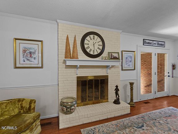 Welcome to this charming 3-bed, 2-bath brick ranch nestled on 1.02 acres in Goldsboro. Conveniently located just 10 mins from downtown and 15 mins from Seymour Johnson AFB. This home boasts original hardwood floors, two living areas, a gas fireplace, a formal dining room, and a stylish kitchen boasting a custom butcher block island and black stainless steel appliances that were updated in 2021. The master bathroom was beautifully updated in 2023 with new fixtures and a white marble walk-in shower. Enjoy the 250+ square foot all-season room, offering a versatile bonus space for relaxation or entertaining, with views of the expansive, fenced-in backyard. Two wired outbuildings offer additional storage or workshop space. Noteworthy upgrades include a new water heater in 2022 and a roof replacement in 2018. Schedule a tour today and don't miss the chance to call this well-maintained home yours!