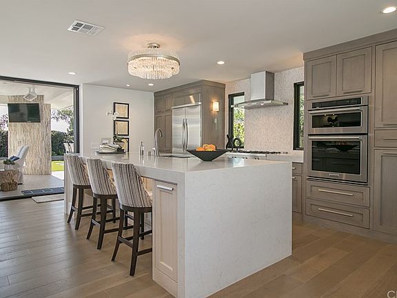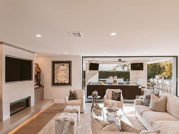 Designers own FULLY FURNISHED, SINGLE LEVEL,FOUR BEDROOM, 3.5 bath home with peek views. Very private lot offering expansive outdoor entertaining areas flow seamlessly from tranquil indoor spaces. Private front courtyard. Direct access to the formal dining room and den/retreat with custom enclosures. Great room concept with fireplace, custom built-ins and glass pocket doors opening to the outdoor covered living area with heating, dual televisions, BBQ bar with ice maker and dramatic accent lighting. Gourmet kitchen is a chef's dream with custom cabinetry, custom lighting and waterfall island. The master suite features dual closets and custom designer finishes. Slider opens onto additional backyard space with modern fire pit table, ideal for large gatherings. Master bath features designer dual vanities accented with custom lighting, walk-in curbless steam shower and separate soaking tub. Secondary bedroom en suite also offers curbless walk-in shower. Two additional nicely sized bedrooms with custom built-ins. Extensive reconstruction including smooth walls, custom LED lighting , premium plumbing fixtures, all new electrical including panel and sub panel. Solid core doors, new roof, new a/c, new irrigation system, completely re-piped including sewer lines and top-tier tankless water heater with re-circulating pump. Customized two car garage with epoxy sealed flooring and built-ins. This single level home complete with custom furnishings make this a unique opportunity.
