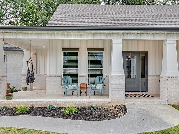 This customized home has almost 1/2 an acres corner lot with a private fenced back yard, the inviting front porch and landscaped home bring a cozy charm to this Modern White brick farmhouse. Upon entering you see a tiled gas fireplace and large great room with plenty of room to gather, the Island Kitchen has two toned cabinets with white and maple tones that would suit any chef, not too mention a huge double pantry, and two additional closets all making storage a breeze. The kitchen not only has a breakfast bar but a large dining area as well with a fun accent wall, french doors to the covered patio and back yard, four well appointed bedrooms where two share a bath, and a primary suite that wraps around into the laundry area for access from your closet/bath, a sitting area with accent wall makes this a primary suite you won't want to miss! The hall sets the tone for this cozy home where you can have a home office set up or a homework/study, make this your own, but buyers won't want to miss this fabulous home