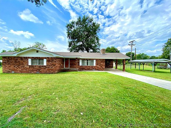 Well maintained 3 bedroom 2 bath home in the Moss Addition in Vian. Just a block to Vian High School and the football field! Home has a newer roof, central heat and air, electrical panel, concrete drive and more! Home sits on a spacious lot and goes road to road. It includes a fenced in yard and 2 storage buildings.