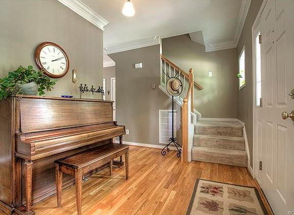You'll love this home the minute you walk in! 4 BR/2.5 BA located in The Grove. Open floor plan, 9' ceilings, hardwood floors & triple crown moulding. Storage is not a problem in this house-every bedroom has a walk-in closet! Finished 3rd floor Bonus room can be 5th bedroom, rec room or whatever suits your fancy. Eat-in kitchen is fresh & sunny w/ lots of natural light, Maple cabinets, island & large pantry. Family room w/ gas fireplace and a wall of windows to enjoy the view for every season. Dining Room & Living Room are open & spacious. Master Bedroom suite is private and more like a retreat, w/ stunning vaulted ceilings, large Master Bath & huge walk-in closet. Like to entertain? You can! Backyard is perfect for that w/ a deck with built-in seating, cute patio area & fenced backyard w/ lots of room for picnics, play areas & corn hole shenanigans! Other features you'll love: View from the front porch (no houses across the street, just lots of trees). MTCE FREE VINYL SIDING, NATURAL GAS, GARAGE, MATURE LANDSCAPING,, POOL, CLUBHOUSE, WALKING-TRAILS, EXCELLENT SCHOOLS. Convenient to Rt 288, shopping, entertainment, parks, Dining, (Urban Farmhouse, YMCA, Wegmans, Mines Park)