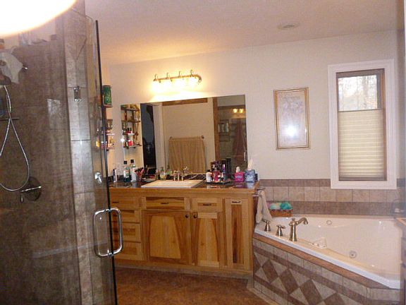 EVERYTHING you want in this like new home on two city lots, full basement with walkout, ch/ac, gas log, storm shelter, wood stove in basement circulates thur home, 3 bedrooms 2 full baths, xtra large bathroom with large master closet.ceramic, wood and carpets, bedroom nice size with large closets, ceiling fans in all rooms, attic fan on main level. Two garage on main level, one basmt