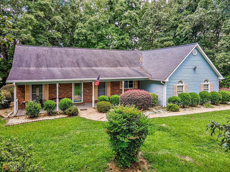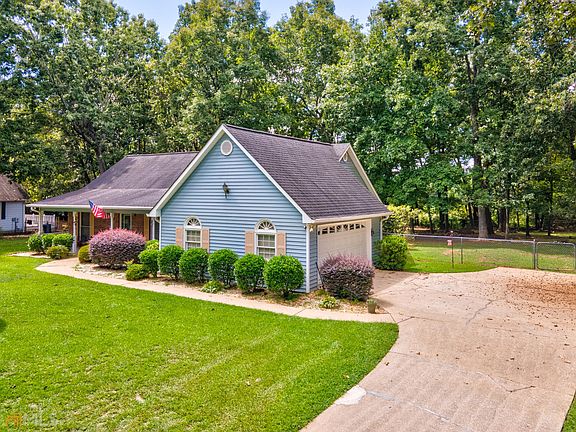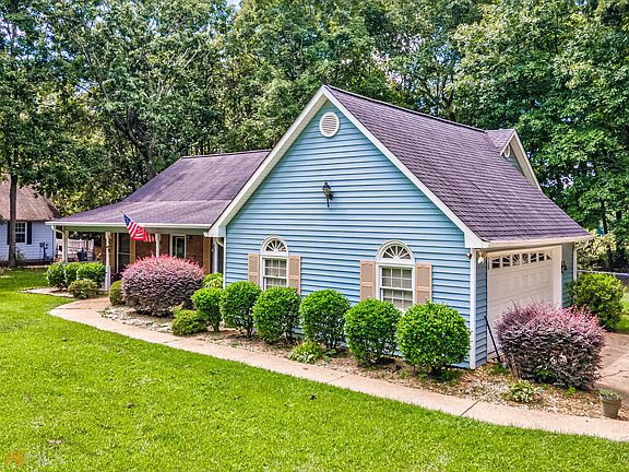 Charming Rocking Chair Front Porch - 3 Bedroom 2 Bath Split Bedroom Ranch on a level, wooded lot. Low maintenance vinyl siding with a fenced back yard. High quality Berber Carpet in bedrooms and living room. Large living room with Gas Fireplace and exposed wooden beams. Kitchen has stained real wood cabinets and smooth surface cooktop. Real hardwood floors in foyer, dining room and kitchen. Two exterior storage/work shops with electricity. No HOA. Two miles from downtown Winder and 20 minutes from Mall of Georgia.