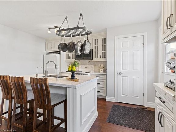 Stop! This is the one! Prepare to fall in love with this beautiful owner-occupied FREEHOLD townhome. No monthly fees! Boasting 3 bedrooms, 2 bathrooms, a fantastic chefs kitchen, a fully-finished basement, and a DOUBLE car garage, this home has it all! Perfect location in Clair Hills, one of the very best school zones in the region. The impressive main level boasts tons of natural light, hardwood floors, a new high-end kitchen, dining room, bathroom, and a patio door walkout to the private yard with deck and gazebo. Upstairs, there are 3 spacious bedrooms, including the oversize primary with walk-in closet, and a large 4pc bath. The basement is fully finished with a family room, wet bar, plenty of storage, and laundry. The double car garage is heated and insulated. Many recent updates including new lighting & paint (2024), brand-new furnace & A/C (2023), Complete custom kitchen, and hardwood flooring (2021), and more! Call your realtor today to book a private showing before it’s gone! Proptx: X11914339