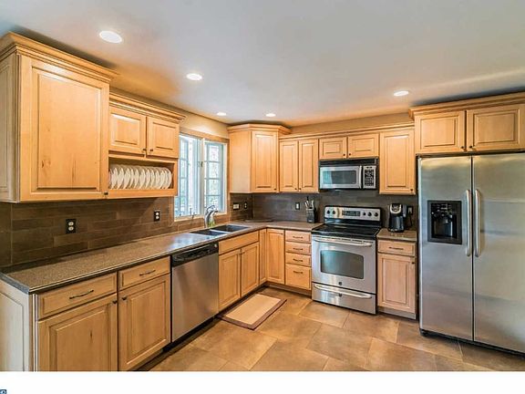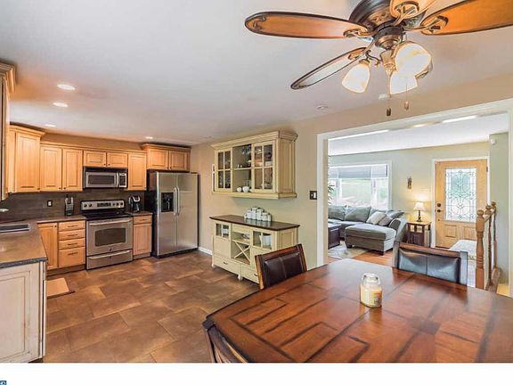 Completely remodeled raised ranch home with finished lower level is a must see in Skippack Twp. Updated eat-in-kitchen with beautiful cabinets, corian countertops, tile flooring, stainless steel appliances and sliding doors leading to your expansive deck with breathtaking views of your backyard. The living room offers a bay window allowing for an abundance of natural lighting, a gas burning stove with blower and hardwood flooring. Down the hall are 3 generously sized bedrooms and two updated bathrooms. The owner's bedroom has sliding doors leading to the back deck. Walk down to the lower level to enjoy the family room, game room, bonus room, laundry room and storage room. A gorgeous lower level to entertain and enjoy some family fun. The game room comes with a pool table, the family room has a gas fireplace with blower and sliding doors leading to your paver patio and backyard. A custom bar with stone, a natural wood top and built-ins will be a crowd pleaser. Down the hall is the laundry room and a bonus room which would be great for exercising, an office or a play room. A great storage room with built-ins. This home brings the outdoors in and feels like a retreat out back. A truly special home. Other features include a NEW ROOF in 2014, a large driveway and a spacious shed too. Square footage includes the finished lower level.