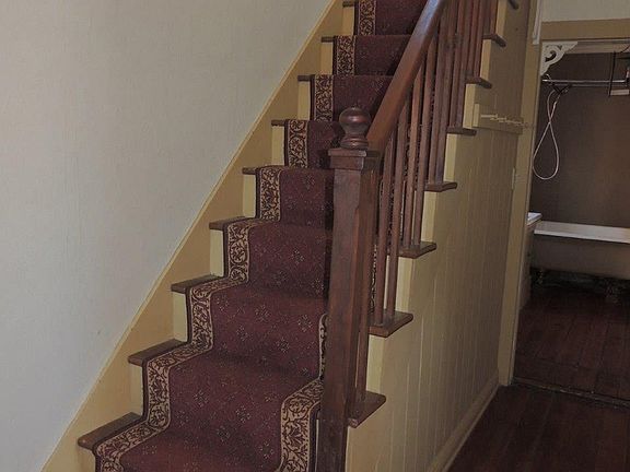 Historic brick miner's cottage on quaint in-town homesite offering many updates and very nice amenities both inside and out. Wood floors flow through main level in cozy living room, dining room, full bath with clawfoot tub, and spacious kitchen with cherry finish Schrock cabinetry, panelized accent wall, and room for eat-in table. Renovated laundry room off kitchen offers tile flooring, room for full size washer/dryer, and additional space for storage. Upper level features master bedroom with large closet area, and secondary bedroom with private staircase to kitchen. Spacious paver patio with limestone rock walls offers a great space for entertaining in the outdoors, and was added in 2012. Additionally, the water softener, furnace, and water heater were updated in 2011, along with new central air in 2012. Other features include nicely sized yard to rear, detached storage shed, off-street parking, and covered front porch to sit and enjoy the pleasant city views. Great overall package.