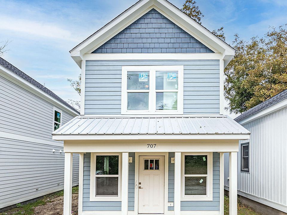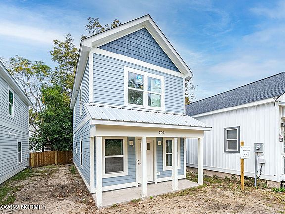 Truly charming and delightful new construction home located close to downtown and all that it has to offer. Enjoy restaurants, shopping, museums, live music, breweries, carriage rides and the beautiful Riverwalk. This two bedroom, 2.5 bath home boasts a welcoming front porch with metal roof accent, open floor plan, LVP flooring, granite counters, tile backsplash, stainless steel appliances, washer and dryer included and custom soft close cabinets. Gravel driveway for off-street parking and privacy fence. Close proximity to CFCC and PPD.