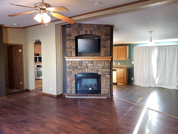 Don't miss out on this this large, super affordable manufactured home located in a beautiful, quiet SW Minot neighborhood. This very nice home features 3 bedrooms with walk in closets, 2 bathrooms, and a large open living area with fireplace that is central to the home and flows right into the dining room and kitchen. The master bedroom has an attached bathroom with a large shower and access to the laundry room. The other two bedrooms are located on the opposite side of the home, with a full bath off the hallway. The kitchen features tons of storage cabinets, and a separate stove and oven. The front and back of the house both have large wooden decks for outdoor lounging and grilling. The large 24x24 2 car garage has workbench and opener. New carpet was installed in the master bedroom and new tile flooring in dining room, kitchen, bathroom, and laundry room. Seller has new carpet for bedroom #2 and may include a $500 paint allowance. Call and set up a showing today!