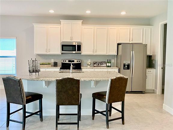 Open Concept Floorplan with Double Door Entry & Foyer, Tray Ceiling, Bay Window, Triple Hidden Slider, Tiled Living Areas, Upgraded 42" Tahoe Linen Cabinets with Crown Molding. Center Island with 3cm Granite counter tops, Stainless Steel Kitchen Appliance Package, Large Walk-In Pantry, 8' Interior & Exterior Doors, 5.25" Baseboards throughout. Two Inch Faux Wood Blinds on all Windows. Home includes Zip System Sheathing for added Weatherization, R-38 Attic Insulation, 16 Seer HVAC and Double-Pane Insulated Windows for added Energy Efficiency. Exterior features include Coach Lighting, Paver Driveways & Walkways, Designer Landscaping and Irrigation. Yard is fenced on 2 sides!! Quiet, Bedroom Community, conservation views, close to major lakes & 11 golf courses, just minutes to the Lakeridge Winery, the Historic Howey Mansion and Mission Inn Resort. Out of the way but still within a close proximity to the Turnpike and centered between Mt. Dora, Tavares, Clermont and Orlando. Builder pays all closing cost with Preferred Lender.