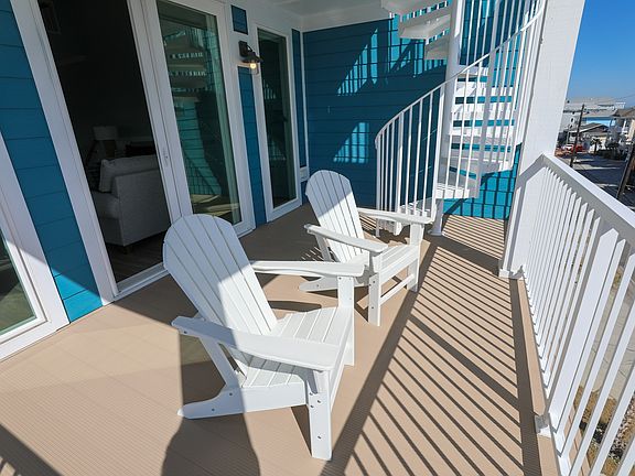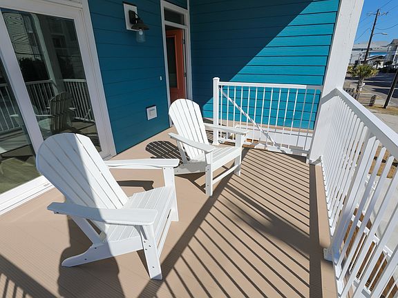 The middle floor offers two king suites with attached private baths and flat screen TVs. Both bedrooms on this floor have a private balcony. One of these decks does have a partial view of the ocean! This floor has a washer and dryer for your convenience.
