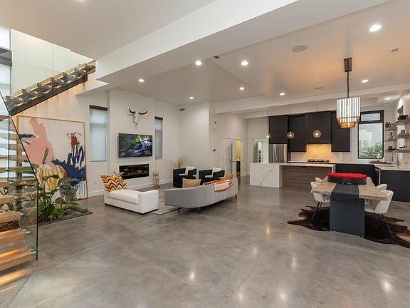 Stunning modern 4 bed, 4.5 bath home steps from the village district! Built in 2016 and remodeled in 2019, very lightly lived in - Like new! Fireproof ACI precast envelope, Geothermal HVAC, Solar panels, Covered porch, Steel door, Elevator, Open floor plan, polished concrete floors down with wood floors up, open wood steps with glass railing, Quartz countertops, large island, walk in pantry, walk in laundry/utility room, great room, additional bonus room or bedroom on first floor with full bath and wet bar. Covered porch with low maintenance, fully fenced, turf yard. 3 spacious bedrooms upstairs including Master with sitting area & large walk out covered balcony terrace. Master bath with dual vanities, garden tub, walk in shower, and walk in closet. Willing to sell furnished! Garage addition info in docs.