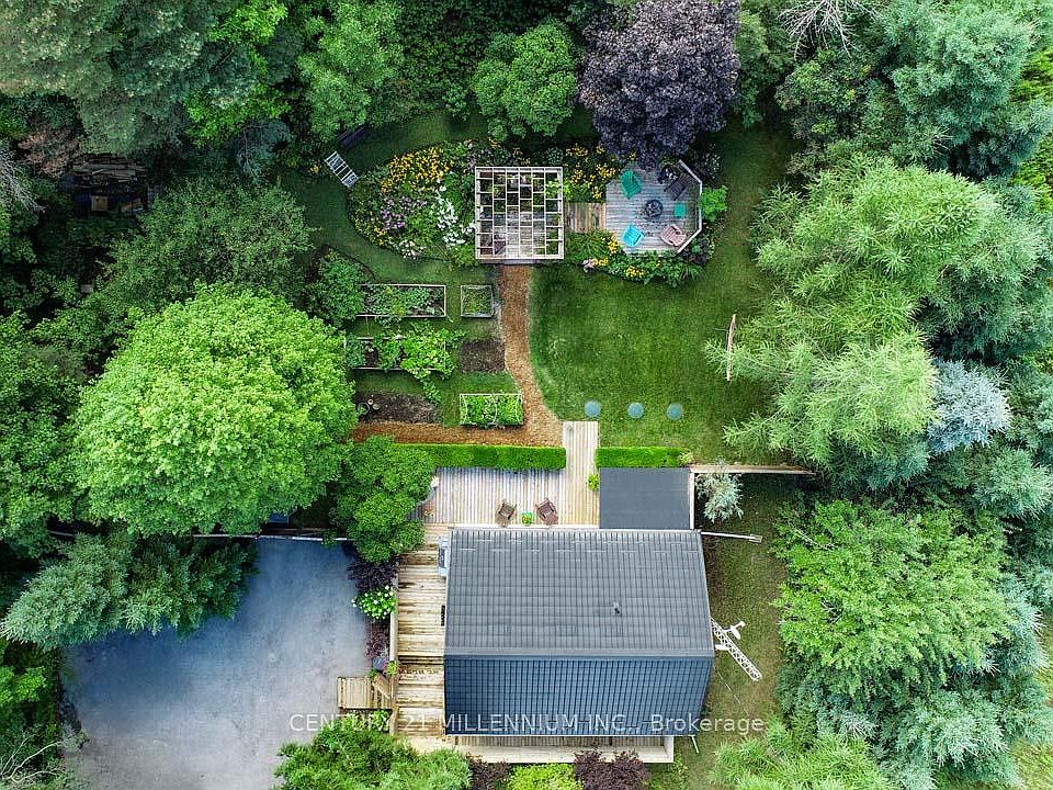 Upgrades galore in this private, open-concept bungalow set on a mature .38 acre lot with towering trees, perennial gardens, raised garden beds, multiple sitting areas, pergola, firepit, fenced backyard oasis & more! An inviting 3-sided wraparound deck leads to the front door and the hidden backyard. The bright and spacious open-concept Living Room offers real milled birch flooring, a Jotul gas fireplace, a convenient pivoting wall entertainment unit, and a Sitting Room with a walk-out to the south-facing 3-Season screened-in Sunroom. Tastefully updated, the Kitchen features Stainless Steel appliances, a 5-burner gas stove, a durable and visually striking terrazzo countertop, commissioned from artist Walter Gibson, infused with coloured glass, ceramic tile backsplash, and a nearby walk-out to the deck with a natural gas hookup for easy barbequing. The south-facing Primary is flooded with natural light, has birch flooring, pot lighting, a walk-in closet and is nearby to the 4-piece main bathroom, which includes a rainfall shower and deep-soaker tub. The lower level has an office with an electric fireplace, laminate flooring, pot lighting and a walk-in closet. A Den has laminate flooring and is used as a Hobby Room. The Laundry room is combined with the 2-piece bathroom. Turn the key and move right in! Septic (2022), Hygrade Metal Roof (2015) w/ transferable warranty, Carrier Furnace (2020), A/C (2010), well pump (2016), paved driveway (2022), 2 sheds (2021) wired for hydro. Fabulous location near the Villages of Belfountain & Alton. Enjoy being centrally located to farmers markets, quaint restaurants, art centres, farms, hiking and biking trails, skiing, TPC Golf at Osprey Valley, craft breweries and more! 10 mins to Amenities in nearby Erin, Orangeville. 30 mins to the GO Train. 40 mins to Pearson Airport and a 1-hour drive to Toronto.
