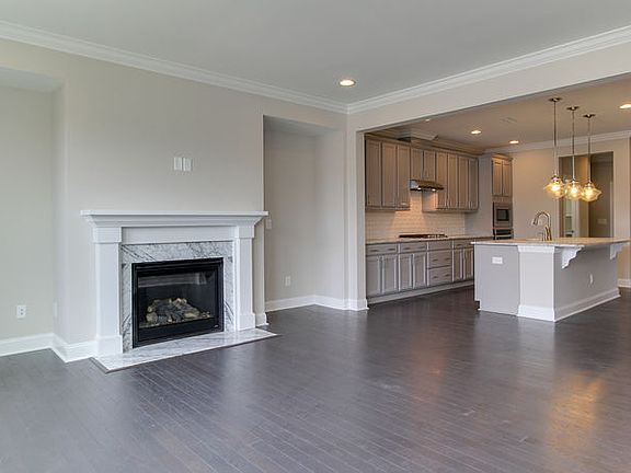 The Chelsea's creative design options can accommodate homeowners who prefer a one-bedroom, 1.5-bath townhome or those wanting three bedrooms and three baths. In the 2,134-square-foot floor plan, the covered front porch opens to a two-story foyer, which leads to a breakfast nook/dining room. The island kitchen, with maple cabinetry, granite countertops, and Whirlpool appliances, overlooks the great room, with a fireplace. Adjacent to the Great Room, the patio can be extended and converted to a screened-in porch or morning room. The first-floor bedroom, with its own full bath, can be used as a study or flex room. The downstairs owner's suite, with a walk-in closet, offers an optional garden tub and shower or deluxe-shower alternative. Upstairs can accommodate a bedroom and full bath, while the spacious loft overlooks the foyer in the luxury Chelsea.
