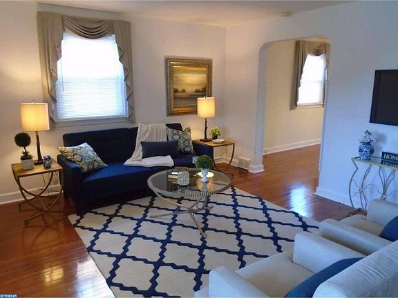 Beautiful Stone & Brick Aronimink Twin. First floor: Living Room, Dining Room and Eat-in-Kitchen with Oak Cabinets.Second floor : 3 Bedrooms and a Hall Bathroom. Basement partially finished with laundry facilities. One car attached Garage. Vinyl Windows throughout. Central Air! Hot Water heater. Walk to Drexeline Shopping Center.
