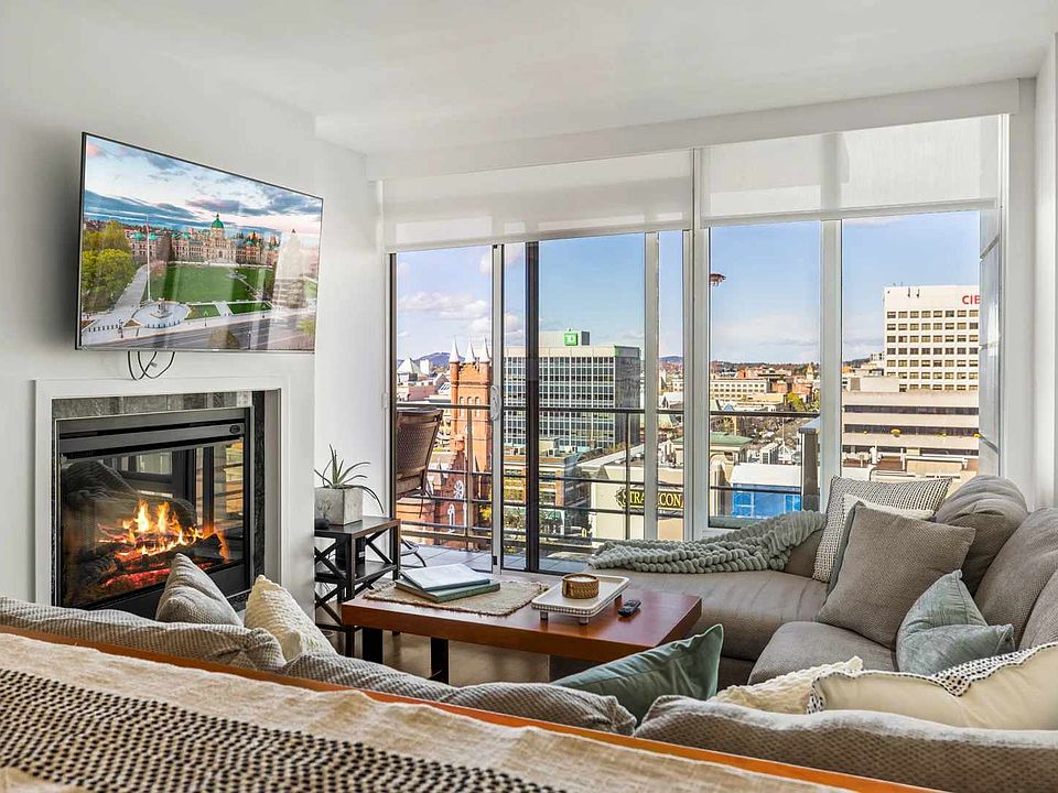 "stunning city views" Experience elevated downtown living in this 14th-floor condo with breathtaking city views! One bedroom fully furnished luxury condo. Available Now Don't miss out on this incredible opportunity! Perfect for professionals who value comfort, convenience, and style. Features: City Views Enjoy stunning views from your private patio. Convenient location, adjacent to the Empress Central Air & heating Open-Concept Layout Smart, efficient design ideal for singles or couples. Floor-to-Ceiling Windows Soak in natural light and breathtaking views all day long. Fully Furnished Thoughtfully outfitted for modern comfort and minimalist living. Building Amenities Include: Fully Equipped Gym Spa deck with jacuzzi and seasonal pool Secure bike storage (FCFS) In-suite laundry Secure U/G parking Monthly Rent Rate $3400 Refundable Security Deposit . . . 1/2 Month Rent Booking Fee . . . $90 *one time fee prior occupancy Located in the heart of downtown Victoria, you'll be steps from cafes, shops, restaurants, trails, and transit. Whether you're a professional, student, or minimalist-at-heart, this is urban living at its best. Interested parties should provide an email contact to receive a link to our web page for more details and rental application.