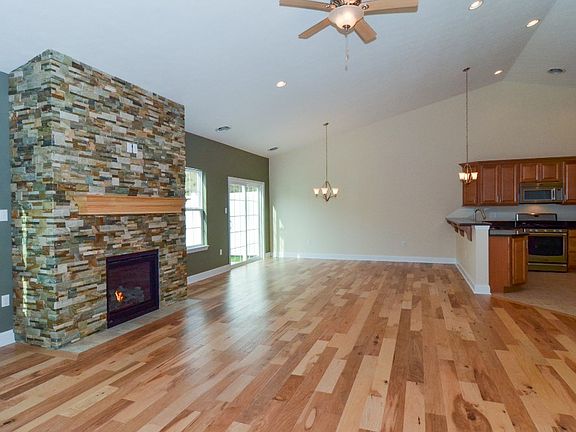 This beautiful one-floor-living home includes 3 bedrooms, 2 full baths, spacious Living Room & Dining Room, and 2-car garage. Upgrades include: Cathedral Ceiling, Hickory Hardwood Flooring in Great Room, Hallways, Master Bedroom, Master Closet. Granite in Kitchen and 2 baths. Beautiful Tiled Gas Fireplace, Tray ceiling in Master, Custom Cabinets in Laundry Room, Garage storage w/pull down steps, Auto Door on Garage, and Utility Sink in Garage.
